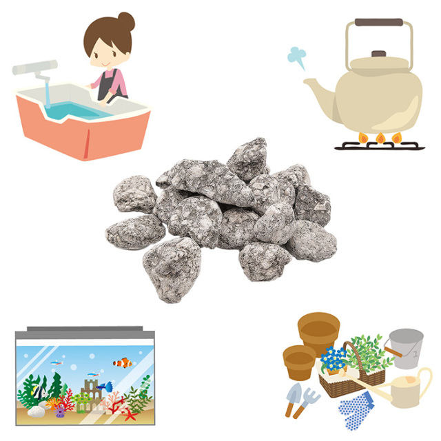 古くから日本や中国で利用され、吸着性に優れた多孔質の石です。