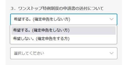 ワンストップ特例制度を利用されたい方は、まずはこの画面で「希望する」を選択することが必要です。